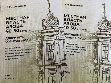 14 февраля 2025 года в конференц-зале Азовского музея-заповедника прошла презентация книги Валентины Михайловны Долинской «Местная власть Азова 40-50-х годов: документы, события, люди». Через призму деятельности Азовского городского совета депутатов трудящихся и его исполнительного комитета в книге рассказывается о наиболее значимых событиях в истории Азова 1940-50-х годов, а также о людях той эпохи.