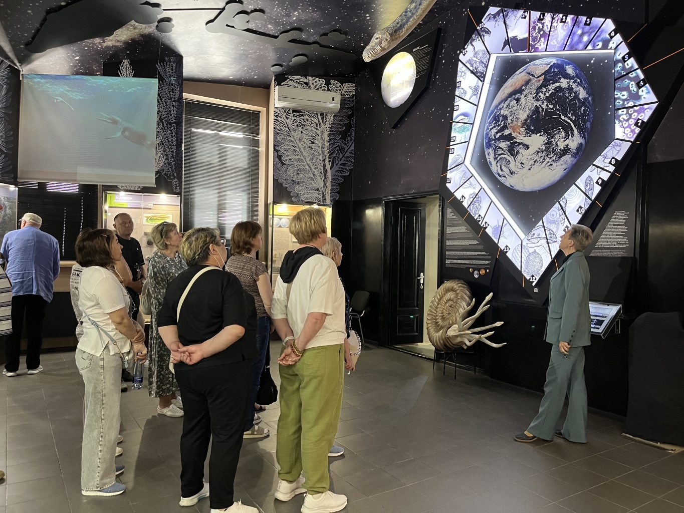 Посетители услышат о том, какой была флора и фауна Приазовья 100 миллионов лет назад, о том, как благодаря движению тектонических платформ между континентами Гондвана и Лавразия появился океан Тетис, в теплых водах которого обитали гигантские морские рептилии, такие как плезиозавры, ихтиозавры, гидротерозавры.