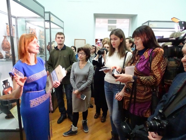 Авторы выставки «Άγαθη τύχη! В добрый час!», старший научный сотрудник, Н.И. Суворова и коллекционер античной керамики, И.М. Некрасов, провели яркую и эмоциональную экскурсию.