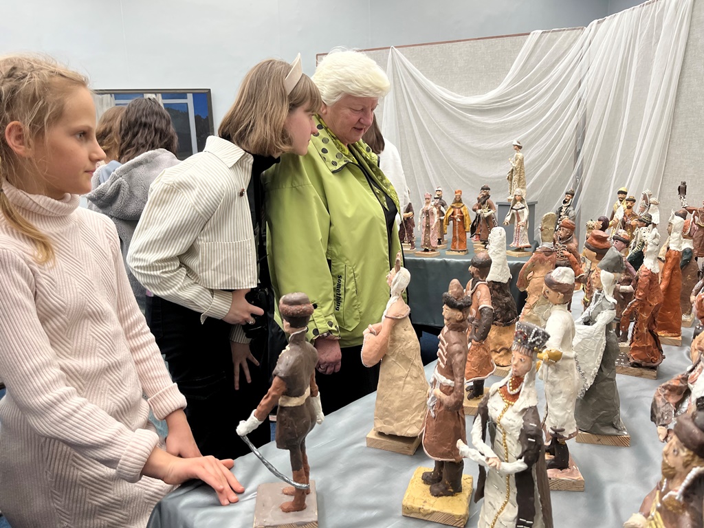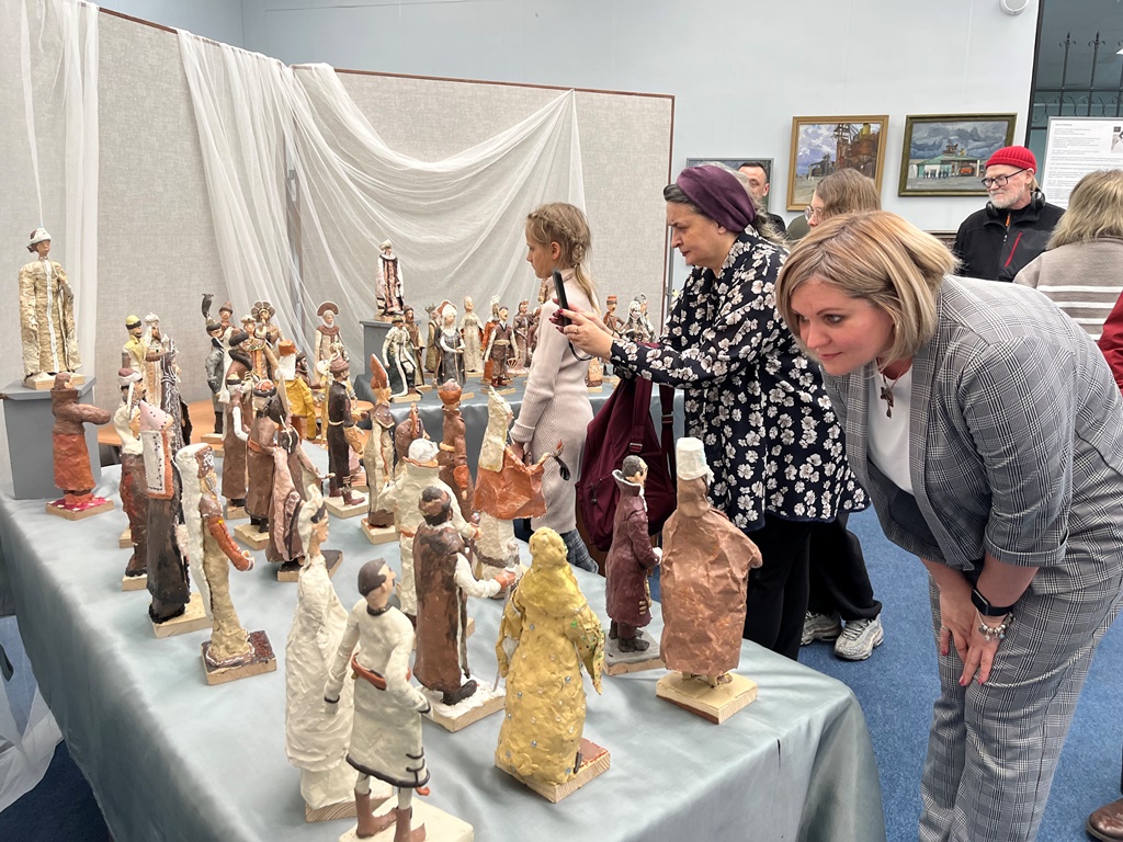 Это яркое историческое событие вдохновило известную художницу, педагога Детской художественной школы им. И.И. Крылова (ДХШ) Наталью Чекалину на дерзкий проект, в ходе которого её воспитанники создали 67 фигурок героев императорского бала 1903 года! Персонажи сделаны из пластилина, их костюмы украшены фольгой, бисером и бусинами.