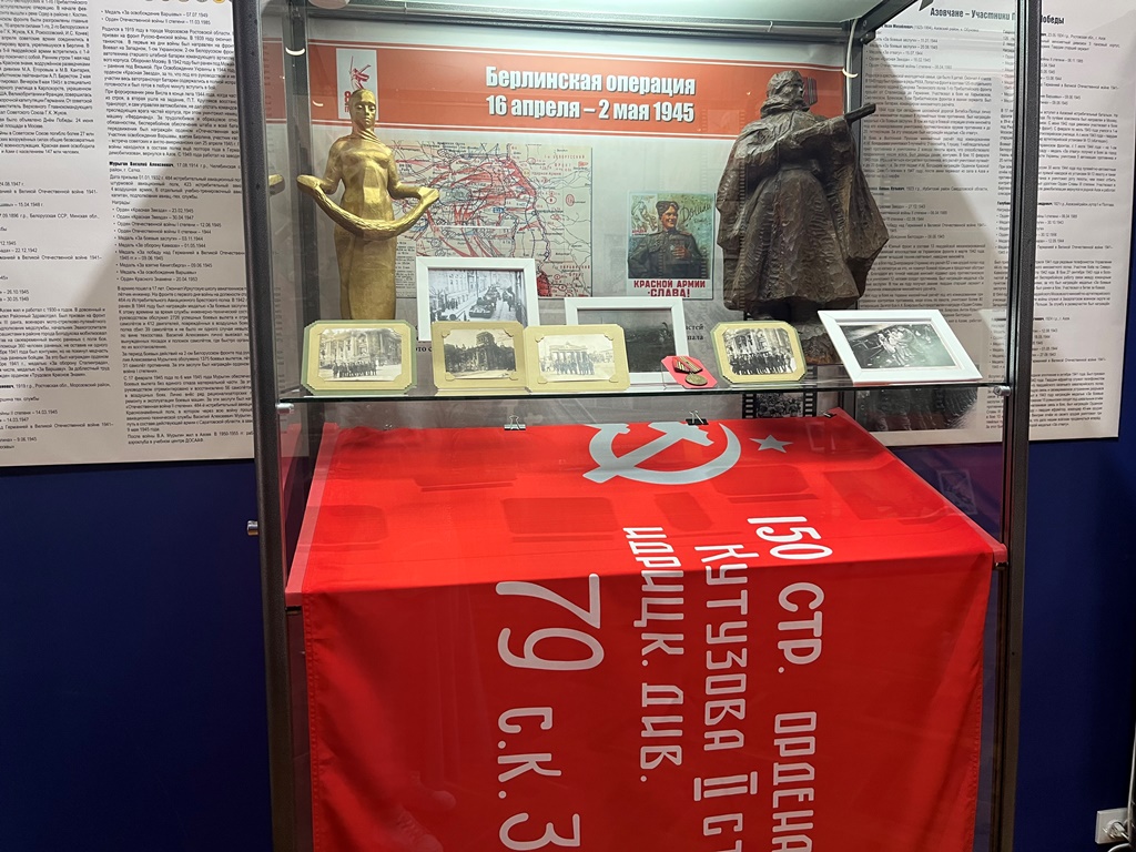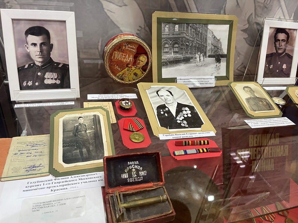 Впервые на выставке представлен комплекс азовчанина Евгения Григорьевича Кузьменко, пропавшего без вести в 1941 году. Именно он совершил один из первых таранов Великой Отечественной войны. Отдельный блок посвящён азовчанам – участникам Парада Победы 24 июня 1945 года.