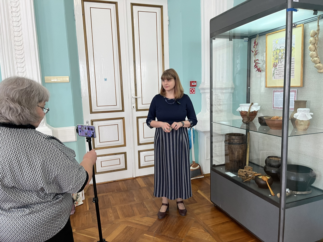 В первый день ребята познакомились с экспонатами этнографической выставки «Предметы милой старины». Онлайн-посетители увидели предметы сельского и городского быта конца XIX — начала XX веков: мебель, предметы интерьера, музыкальные инструменты, посуду, столовые приспособления, образцы дамского рукоделия. Автор выставки, заведующий научно-просветительным отделом музея Ирина Григорьевна Афанасьева рассказала, что такое «салотовка», чем сито отличается от решета, как казачки готовили «кохфий» на Дону и другие интересные факты о старинных вещах, многие из которых давно вышли из употребления.