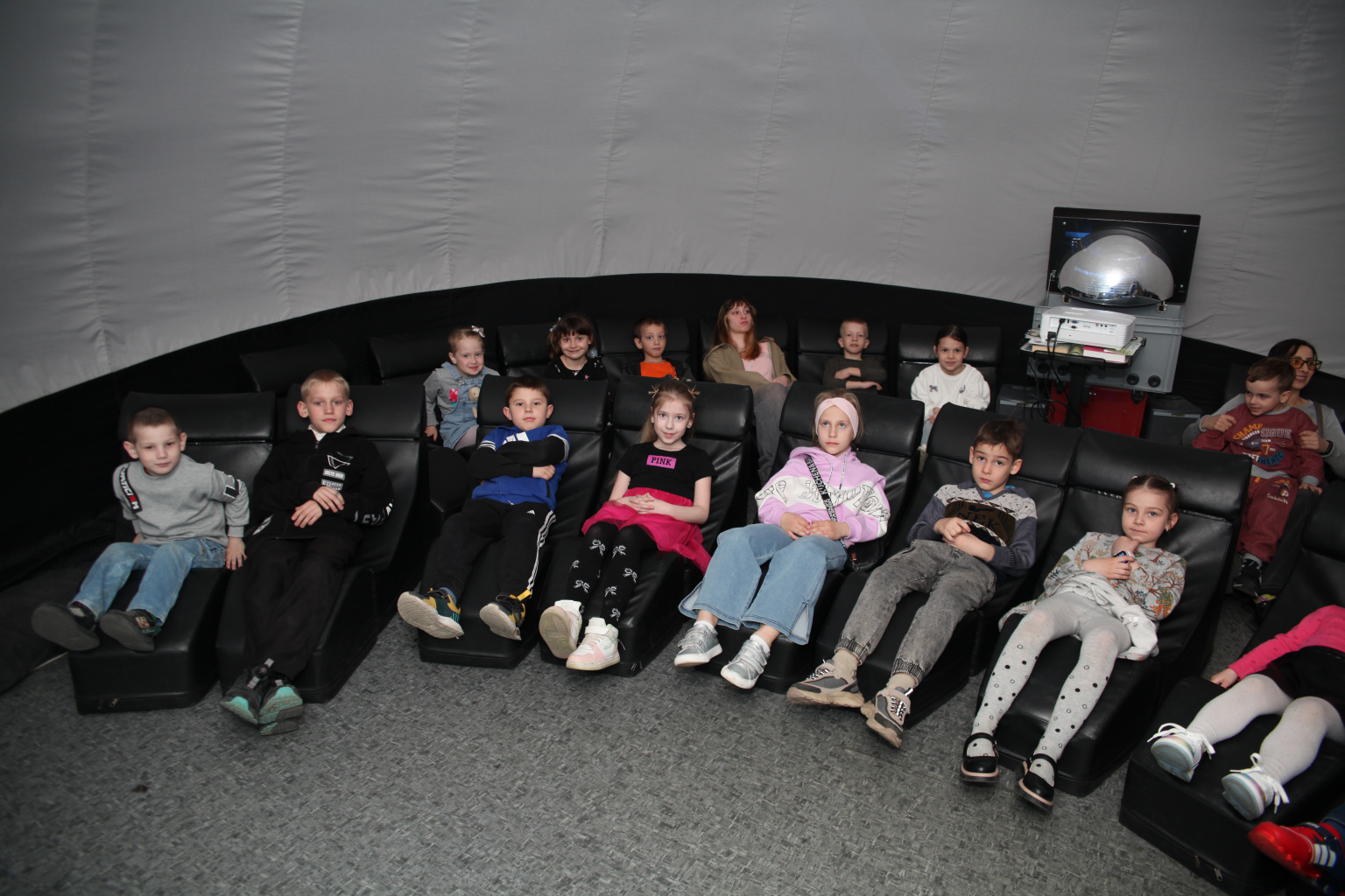 Самые маленькие посетители, учащиеся и воспитанники ГКОУ РО Азовская школа №7 и ГБУСОН РО «Центр социальной помощи семье и детям – Дом семьи г. Азова» покоряли космос и знакомились с миром древних рептилий. Особый восторг у детей вызвало посещение музейного планетария и творческий мастер-класс по росписи барельефов, которые они забрали с собой.