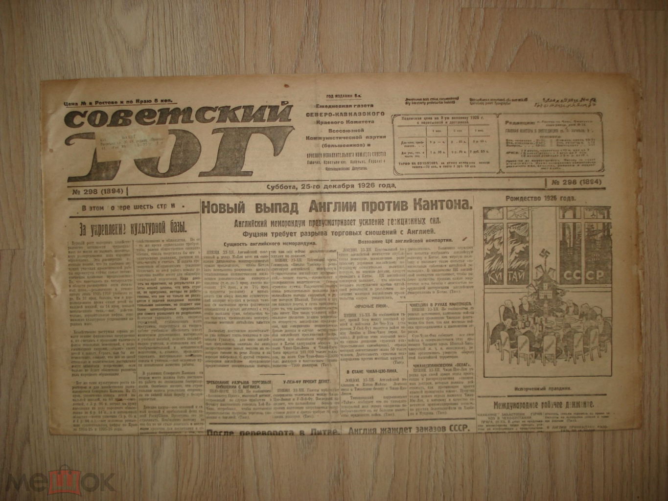 Ежедневная газета «Советский Юг», орган Кавказского бюро ЦК РКП, Донкома РКП, Ревсовтрударма Юго-Востока и Донисполкома, редакция располагалась по адресу: ул. Энгельса, 24. Ростов-на-Дону, 1920–1927.