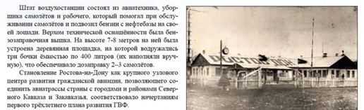1932 – для строительства аэродромных объектов, «…руководители ростовской воздухостанции покупали у частных лиц подходящие по размерам строения: амбары, склады, разбирали их, перевозили лес на аэродром и строили служебные здания…».