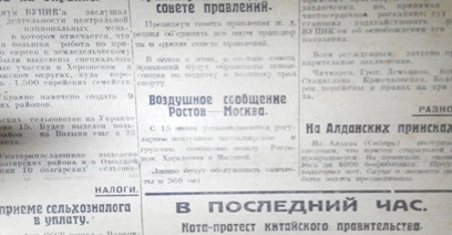 1925 – год открытия отделения общества воздушных сообщений «Укрвоздухпуть» в г. Ростове-на-Дону. При содействии Краевого Исполнительного комитета, на Северном Кавказе начинается активное развитие гражданской авиации и сети воздушного сообщения между городами региона. К открытию первой воздушной линии в г. Ростове-на-Дону газета «Молот» опубликовала целую серию статей, в которых анонсировалось о том, что с 15 июня будет установлено воздушное пассажирское и грузовое сообщение на регулярной основе между городами Ростовом-на-Дону, Харьковом и Москвой.