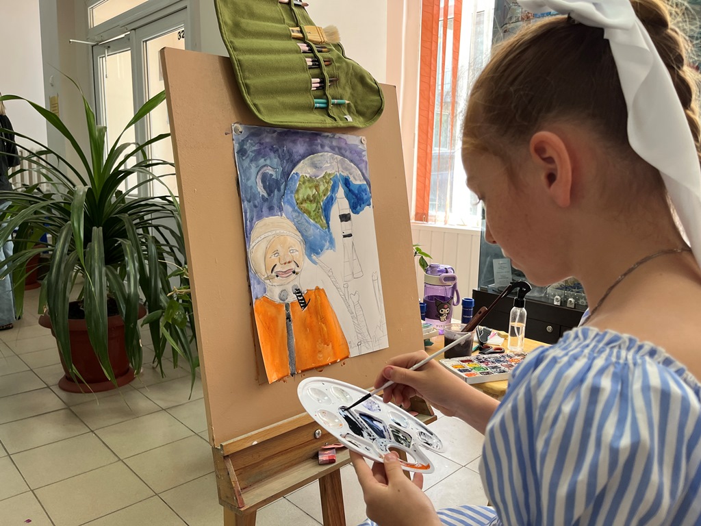 Полтора часа пролетели незаметно. За это время на бумаге появились защитники Отечества и военная техника всех родов войск, врачи, спасающие жизни людей и космонавты, покоряющие небесные просторы, собаки-санитары и эрмитажные коты, спасшие художественные коллекции в голодные блокадные годы.