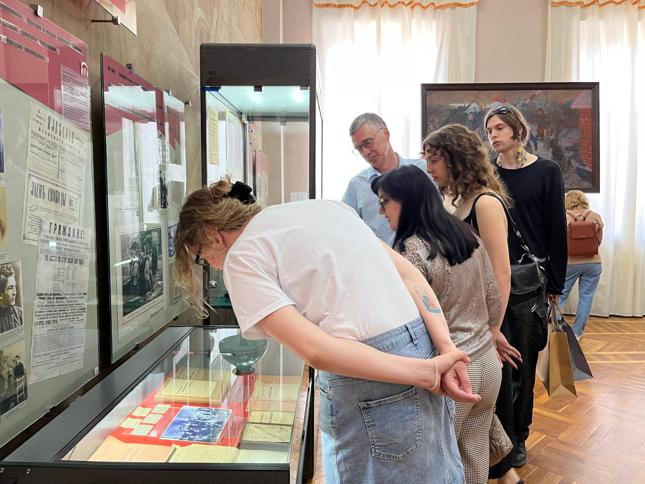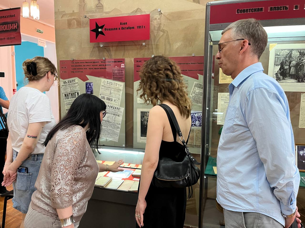 После увлекательного общения старший научный сотрудник отдела истории Светлана Александровна Черцова познакомила гостей с основной экспозицией музея. Их особый интерес вызвал мемориальный комплекс Михаила Ароновича, представленный в одном из залов, посвящённых событиям революции и Гражданской войны в Азове.