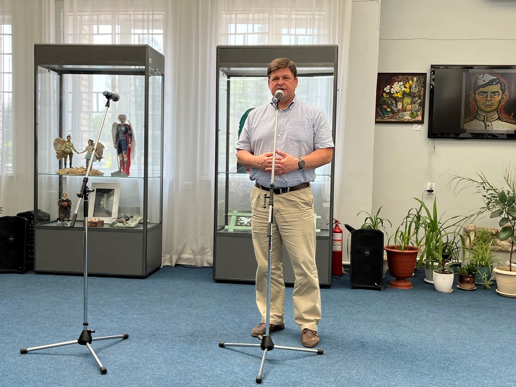 Гостей поприветствовали: директор Азовского музея-заповедника Евгений Евгеньевич Мамичев; кураторы выставки: старший научный сотрудник музея Надежда Игоревна Суворова и председатель Ростовского регионального отделения Творческого союза художников России Юрий Александрович Шевченко; член президиума Азовской городской общественной организации ветеранов (пенсионеров) войны, труда, Вооруженных Сил и правоохранительных органов, член-корреспондент Петровской академии наук и искусств, член Союза журналистов России Александр Фёдорович Негодаев; участник специальной военной операции, капитан Григорий Алексеевич Бендриков; заместитель председателя Творческого союза художников по выставочной деятельности Дмитрий Николаевич Гончаров; искусствовед Вячеслав Валерьевич Филонов.