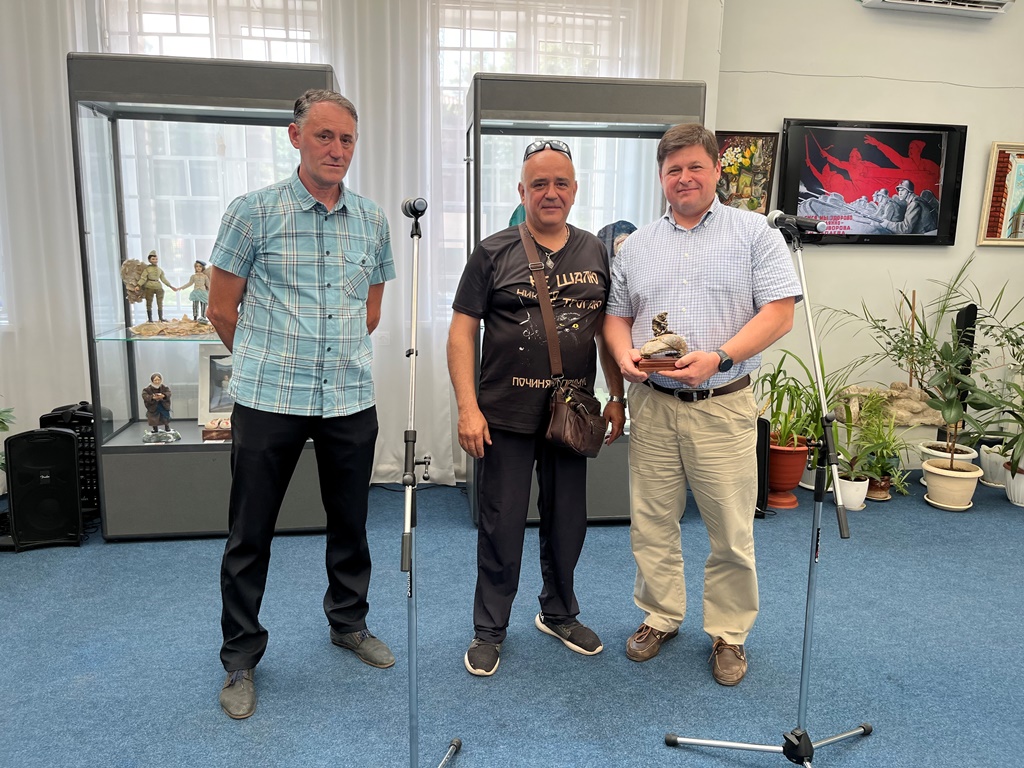 В ходе мероприятия один из участников выставочного проекта, член Творческого союза художников и секции декоративно-прикладного искусства Андрей Анатольевич Савров преподнёс в дар музею своё произведение - бронзовую статуэтку с изображением скифа.