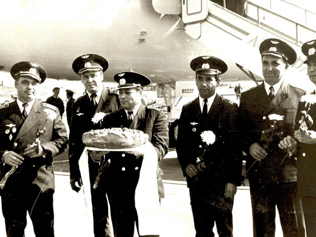 1976 – начало международных полётов на самолетах Ту-134, которые выполняли подготовленные экипажи, командиры воздушных судов (КВС) Ростовского Объединенного Авиационного Отряда: