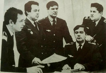 Экипаж КВС (капитана) самолета Ту-154 Семенова Юрия Валентиновича, Ростовский ОАО, 77 Летный Отряд. На фото, слева направо: штурман Литвак Владимир Абрамович, КВС (капитан) Ту-154 Семенов Юрий Валентинович, бортинженер Богомолов Владимир Кузьмич, второй пилот Понамарев Владимир Фридрихович (сидит), крайний справа, штурман инструктор 77 лётного отряда РОАО Верховец Владимир Васильевич. Фото 1983 года.